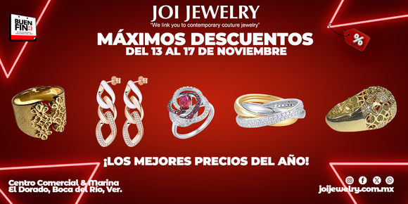 La oferta de productos que presenta JOI JEWELRY es el resultado de visitar las ferias de la industria de joyería más importantes del mundo. Se integra por joyas en oro de 18k y plata de alto diseño, en combinación con diamantes, piedras naturales y otros materiales, fabricadas por prestigiados diseñadores internacionales, utilizando técnicas especializadas para presentar los productos en diferentes terminados como es el mate, rosado, dorado, pavonado y brillante.